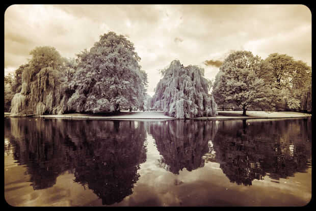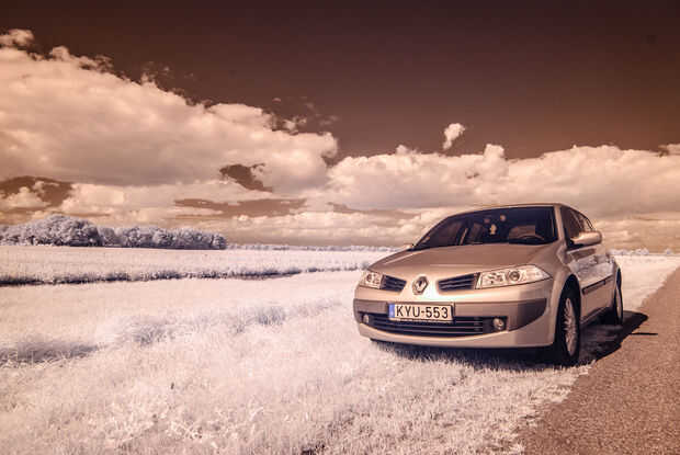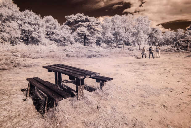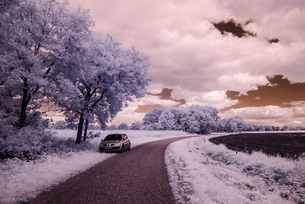 Estoy bastante satisfecho con las fotos que tomé. Interesante para ver, aunque no es soleado, el follaje reflejan mucho de los rayos IR. Como veo, más oscuro el follaje, más rayos IR refleja. El ojo humano es extrañamente oscuro, igual que un coche o cualquier ventana, ya que el vidrio bloquea los rayos IR. Sin embargo las gafas de sol son un poco ver a través! El azul del cielo es de color negro, las nubes se acaba saltando.