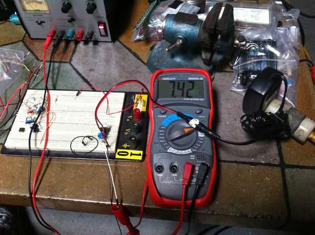 Para propósitos de prueba, es una buena idea de protoboard el circuito primero y asegurarse de que es salida de trabajo (Foto 2). Tomé capturas de pantalla de la información pertinente de la hoja de datos (fotos 3 y 4). La hoja de datos también se une aquí en su totalidad.