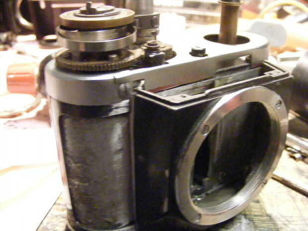 corté abajo el fit.drilled nuevos orificios para los tornillos de la cubierta superior original.  un pedazo de chatarra (metal naranja) fue utilizado por encima de la montura, y parte de una antorcha se utilizó para hacer el bobinador tuvo mejor.