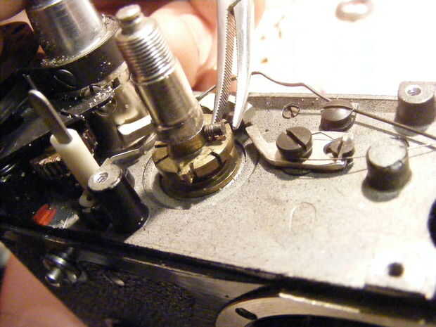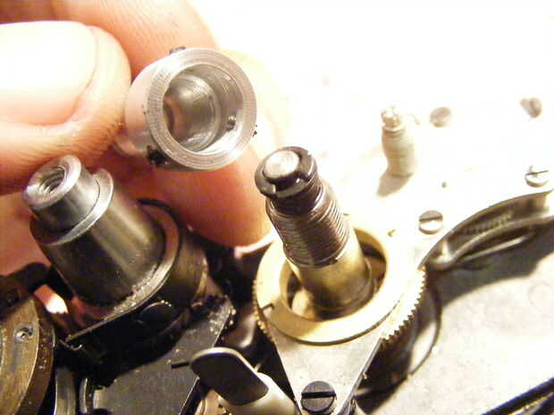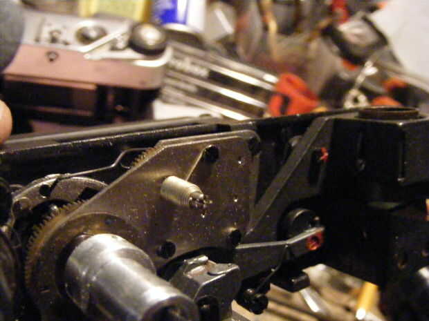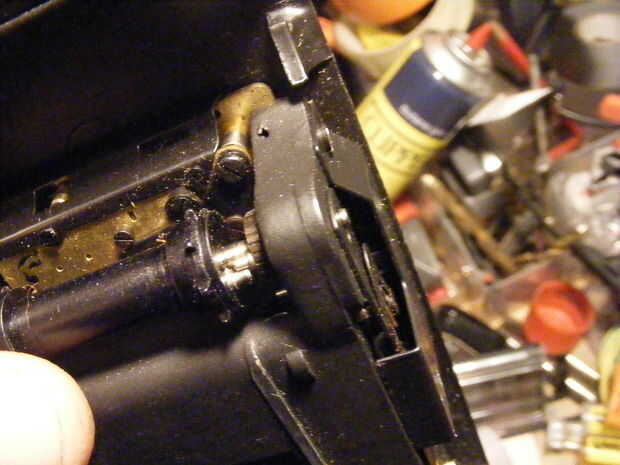 F el. el engranaje sólo debían permanecer en es el eje que stablises el cosita de piñón de película. su asegurado con una ballesta que reemplacé con un anillo de seguridad
