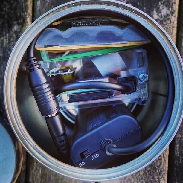 Con la cámara instalada, el paquete de batería y frambuesa Pi se puede levantar fácilmente fuera de la lata para permitir acceso a los diferentes puertos. Encontrar fácilmente descansa en la parte superior de la lata cuando se conecta a una pantalla y teclado si es necesario utilizar el dispositivo con una pantalla. SSH funciona sin necesidad de quitar si tienes una conexión de red disponible.