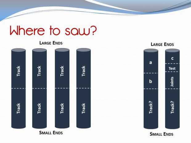 Ejemplo: 4 tubos de 3 m, cortar en trozos de 1 m 50 = 8 piezas de la pista