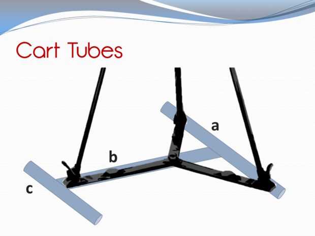 Tomar lo que queda de los dos tubos. Serrar la pieza central del carro con dos pequeñas terminaciones. Marcarlo y ponerlo a un lado con las otras partes de la carretilla.