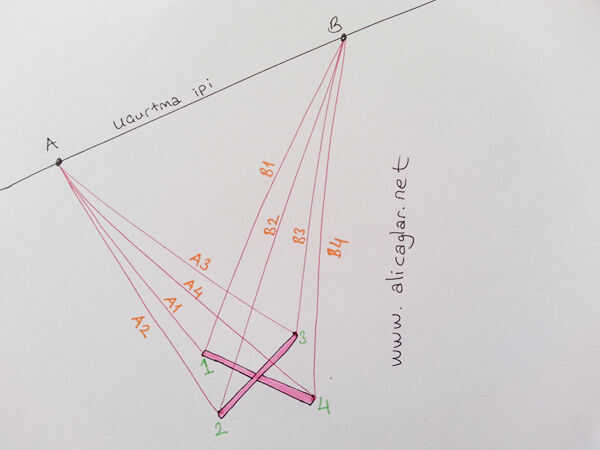 Estás itiraf edeyim; aslında kamera uçurtmaya bağlı değil! Kamera yaptığımız aparatın içinde. Bu aparat ise uçurtmaya değil, uçurtma ipine resimde görüldüğü gibi bağlı. Bundaki amaç uçurtma continuamente hareket halinde olduğu için sarsıntı çok más oluyor. Ama biraz aşağısındaki aparatta duro biraz farklı.