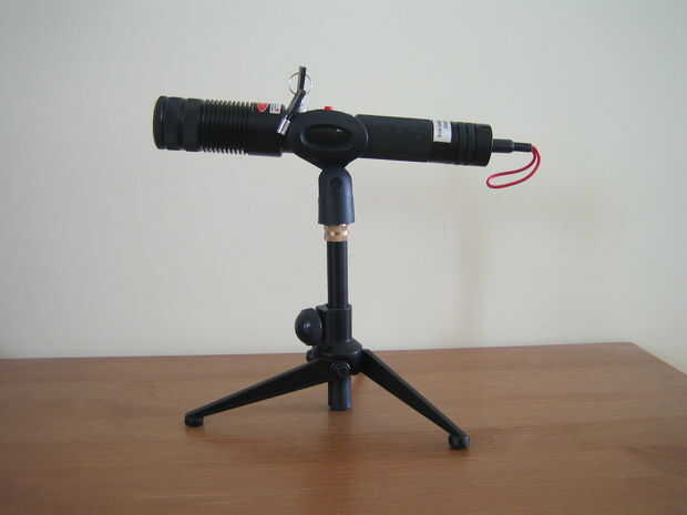 Vamos a empezar! Coloque el láser portátil en el soporte. Esto evitará que el láser constante asegurando que el láser no se mueve cuando apuntó a la cámara.