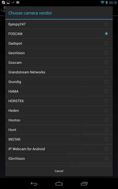 4. Desplácese por la lista. Cuando se dice «Vendedor de cámara», cambiar el valor por defecto a 'IP webcam para android'.