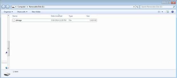Para el momento de la partición de 15MB se encuentra sólo un archivo uimage.