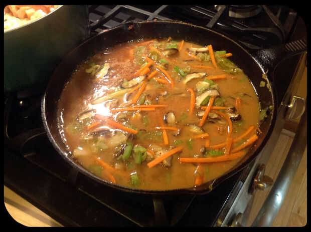 Una cena encantadora Wok con pollo marinado y 2 verduras de nuestra huerta