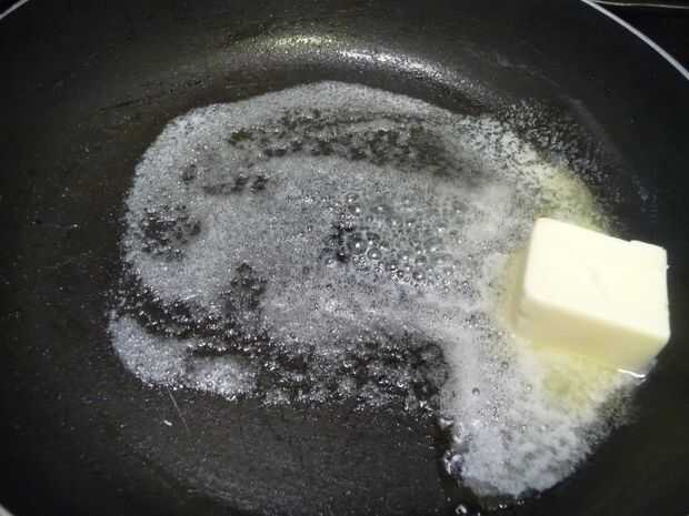 Una vez que todos los camarones han sido cocidos, Agregar 1 cucharada de mantequilla a la sartén. Apaga el fuego y mueva la sartén a una hornilla de frío.