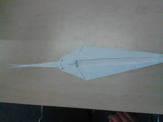 Ahora que tienes la forma básica del camarón se puede hacer en el camarón real. Ahora necesitamos usar nuestras tijeras y corte a lo largo de las líneas como se muestra en la segunda imagen de abajo. Una vez terminado el corte el camarón debe parecerse a la segunda foto. Después de haber completado esta puesto las dos antenas a través de la parte superior entera y se deben comenzar a tomar su forma.