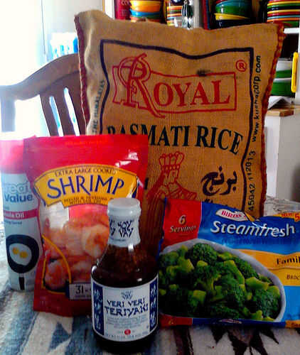 mi marido odia el pescado. Me encanta el sushi. Para resolver este problema, hacer sushi de pollo teriyaki! Utilizar arroz integral en lugar de blanco para que nuestra comida es un poco más sano y añadido cebolla, setas shiitake y pimientos rojos.