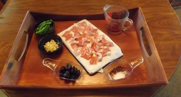 - 1/4 pimiento verde (o el color de su elección); vástago quitado, sin semillas y cortados en tiras delgadas