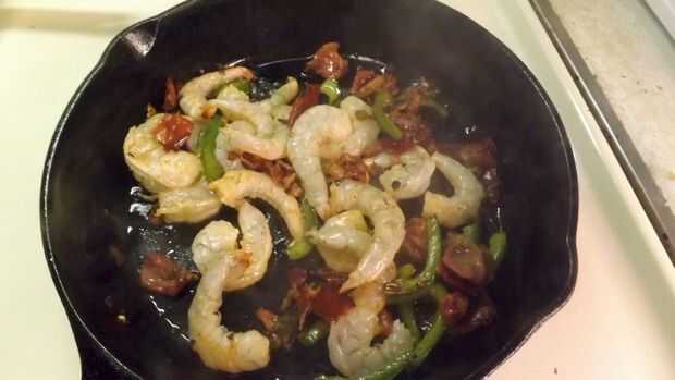 - Agregue los camarones y saltear a fuego medio, saltear hasta que los camarones se tornen rosados (3 minutos).
