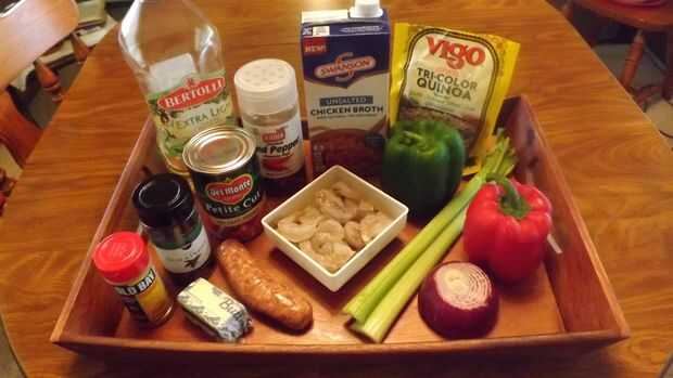 CAMARONES, salchicha y quinua rellena pimientos (1 / 6 paso)