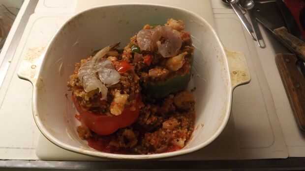 CAMARONES, salchicha y quinua rellena pimientos (4 / 6 paso)