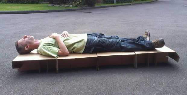 La cama se puede hacer en una hora, se reúne en cinco minutos y es totalmente gratuita. Espero que usted hará algunos para personas sin hogar en su área. Si no puede encontrar alguien, póngase en contacto con un centro de apoyo de personas sin hogar (puede ser un comedor en la iglesia) y recibir ayuda de ellos. Posiblemente usted puede pedir a los usuarios del servicio para ayudar a buscar tarjeta y hacerlos juntos en el lugar.