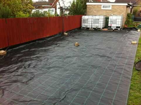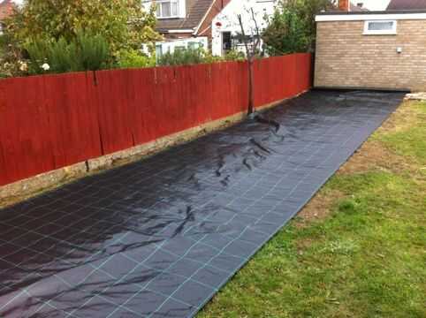 Compramos un rollo de membrana de supresor de malezas que tenía unos 3 metros de ancho. Comprometidos, es una barrera casi impenetrable.