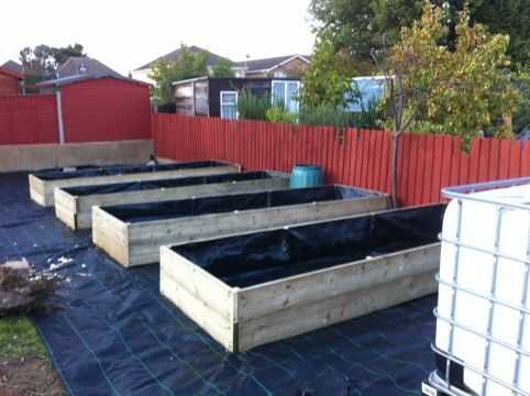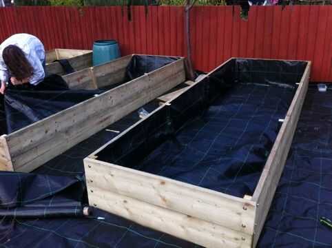Este es un paso opcional - pero para las malas hierbas no, sino también evitar que el suelo tocar directamente los lados agregamos forro a las cajas.  También hemos perforado agujeros en la parte inferior con un cuchillo.
