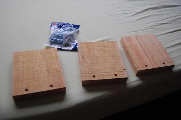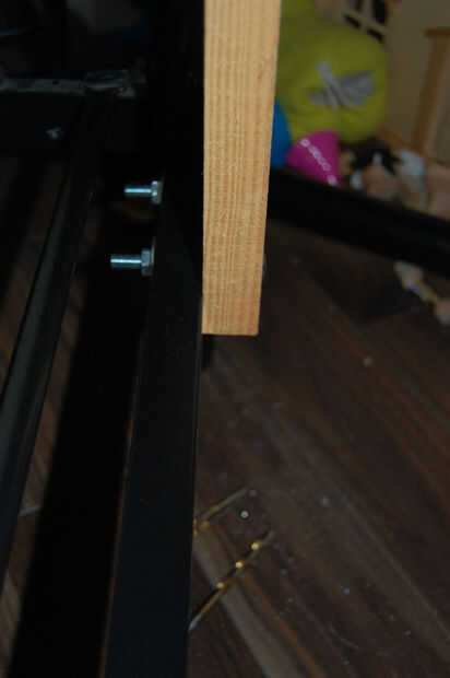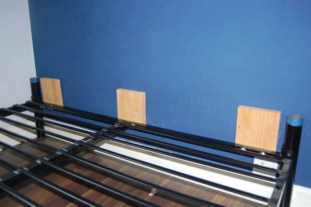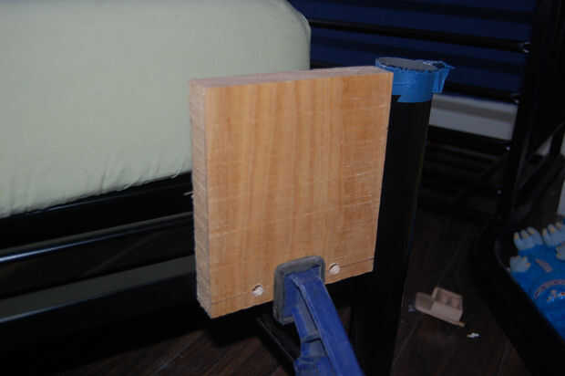 Como la parte superior de las piernas fueron por encima de donde pude fijar las bisagras necesitaba añadir algunas piezas de madera para ampliar la altura a la que las bisagras se serían fijadas a la pared.