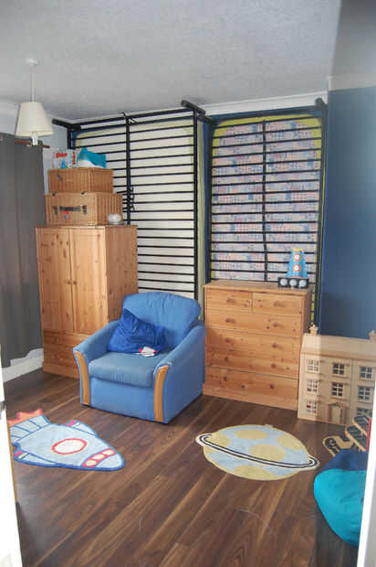 Yo he cambiado los muebles de la sala, que cubre la parte inferior para que no se sentó en las piernas o funcionó en a, también debe detener cualquier escalada en el marco también. Sin embargo si se deciden a subir, lo único que sucederá es que el listón tiran de voluntad simplemente estallar hacia fuera mientras que se fijan al marco con clips de plástico bastante flojos.