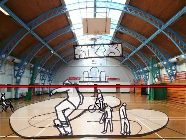 Utilizar la línea de horizonte o nivel (línea roja en la figura 4) del ojo para ayudarlo. Este es el nivel de los ojos de la persona tomando la imagen allí son pistas visuales en la imagen para ayudar a localizar a este. Las puertas en la pared será unos 2m de altura (6'6 ''), por lo que la línea del ojo se ejecutará a través de ellos a unos 3/4 de su altura. Al dibujar la línea del ojo, elementos horizontales por encima de este aparecerá a cuesta hacia abajo (por ejemplo, la parte superior de las paredes laterales en mi imagen) y los de arriba esta línea parece cuesta arriba (por ejemplo, los fondos de las paredes en mi imagen).