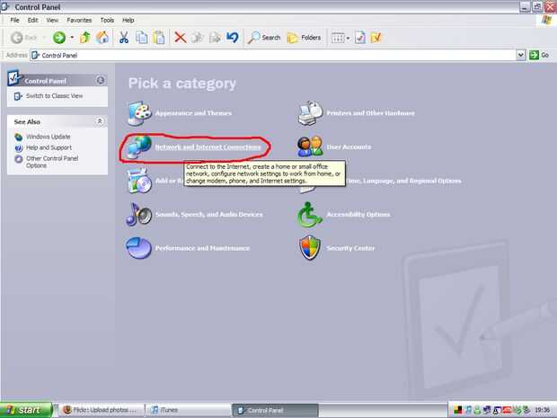 Abra el Panel de Control y haga clic en 'Red y conexiones a Internet' (resaltado en rojo)