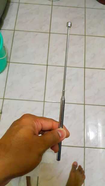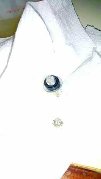Usando un magentic de recogida pescado hacia fuera el perno y reinstalado en el desagüe. Este perno debe par un poco para sellar adecuadamente el drenaje.
