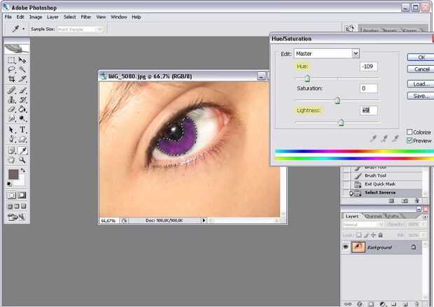 Ajusta el "hue" [no se como se escriba en Español ^ ^ U] y la iluminacion (ligereza) dependiendo de tu imagen (la mayoria de veces no se necesita de la iluminacion). Si imagen de la iluminacion no solo intenta utilizarlo mucho, ya esto hara tu ojo se vea irreal.