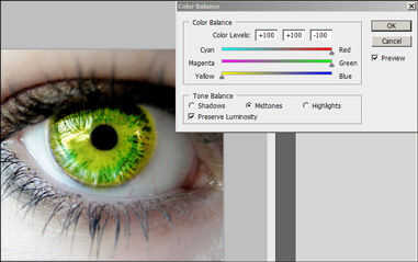 Crear una capa con golpear Ctrl + J. A continuación, selecciónelo. Ahora presione Ctrl + B para desarrollar el color de ojos. Cambio de porcentajes para obtener su color favorito. También puedes cambiar su color de ojos con otros sentidos, ejemplo: filtros, colores y...