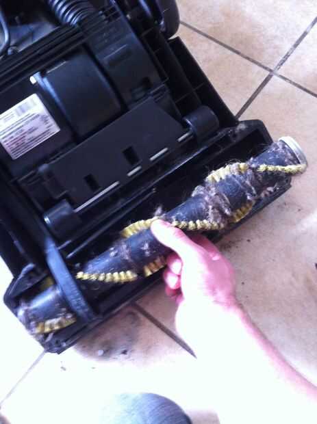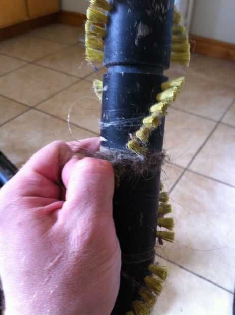 Tire el cepillo del rodillo y limpio o apagado. Asegúrese de quitar todo el pelo que ha envuelto alrededor de las ranuras de guía.