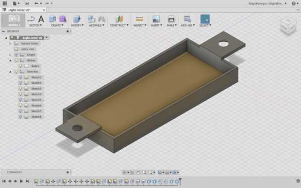 Empecé por tomar medidas del interruptor de la luz que quería cubrir. Diseñé la tapa para trabajar con la mayoría de los interruptores. Hice todo lo que hacen es quitar los tornillos de la parte superior e inferior de la placa, añadir la cubierta y los tornillos. Cuando primero imprimí el modelo pasó a ser sólo un poco de tiempo para que los tornillos de ajuste en su lugar. Así que volví y cambió algunas medidas en el diseño. Puesto que era mi primera vez crear una representación 3D estaba esperando algunos errores, pero fue sorprendido solo me tomó 3 intentos para conseguir un diseño de trabajo. He aprendido trabajando en fusión 360 es mucho más fácil de lo que parece.