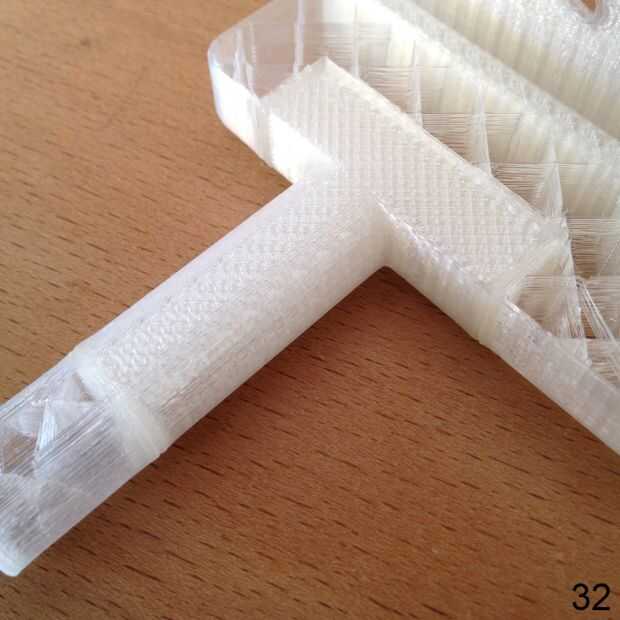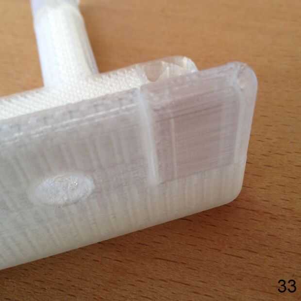 La impresión final de S3D era un poco diferente de la S3r. Como podemos ver en (32)(33), S3D genera perímetros para cada parte del modelo de split. Esto podría ser mejor internamente dando una fuerte zona de enlace entre las densidades de llenado, pero externamente se ve el final de todo el modelo 3D.