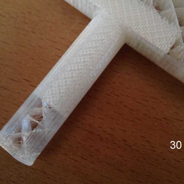 Las piezas 3D eran 3D impreso sin las tapas y fondos para una mejor visualización de las densidades de relleno diferentes.