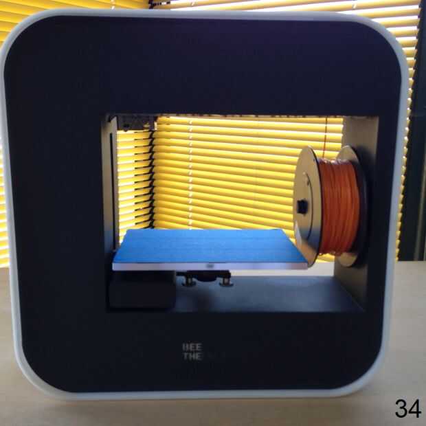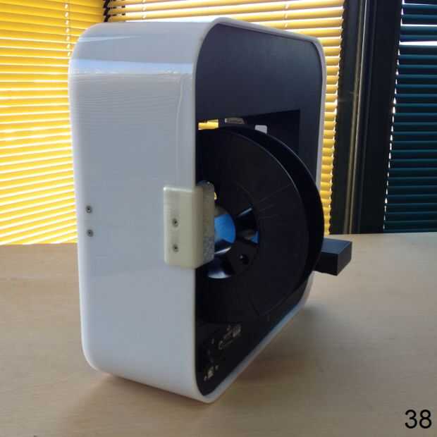 (34)(35) La bobina del filamento por defecto (330 gr) que viene con el BEETHEFIRST se colocó dentro de la impresora 3D, pero debido al tamaño (diámetro exterior) de la bobina de 750 gr, no podemos poner este carrete en el mismo lugar de la bobina del filamento de 330 gr.