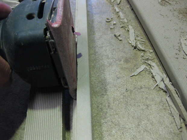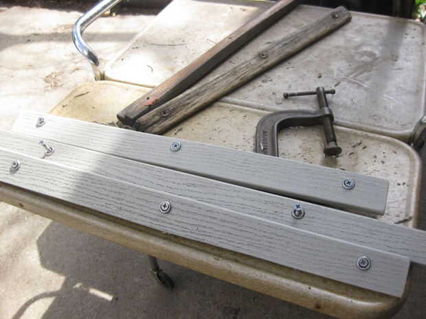 Use una lijadora para suavizar las imperfecciones de la sierra circular y redondo y bordes y esquinas. Luego sujetar piezas antiguas en nuevas piezas para alinear los orificios de perforación. Taladro y prueba de montar en barco. Hacer los ajustes finales.