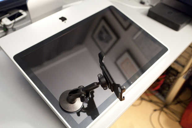 Utilicé la tapa de succión de montaje del coche de mi celular y funcionaba muy bien. No importa donde usted aplicarlo y comenzar a tirar, pero recomiendo hacerlo cerca de una esquina.