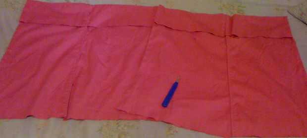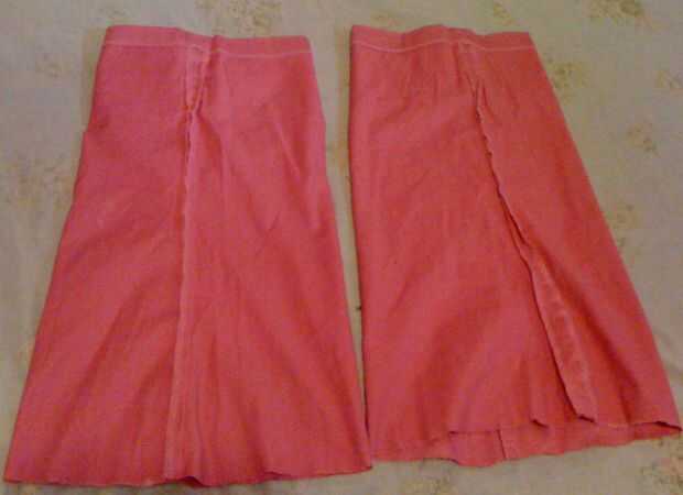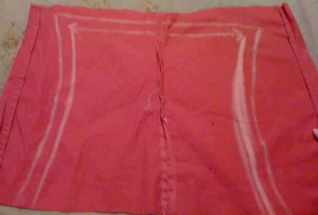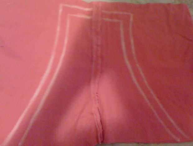 En la otra pierna del pantalón, utilice tiza para dibujar una forma como la parte trasera de una camiseta de racerback. Debe ser tan larga como la parte delantera, pero más estrechas. (Puede utilizar una camiseta racerback para obtener la anchura superior derecha, que el ancho del fondo es suya). Asegúrese de que dibujar un borde de pulgadas para el dobladillo. Recórtalo y dobladillo.