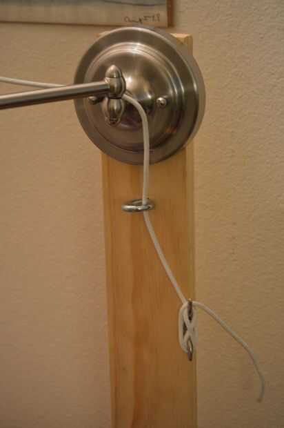 Taladré un agujero para el gancho del ojo (que la cuerda de la línea de ropa se enroscará en más tarde) y atornillado lo en lugar con una arandela y una tuerca en la parte posterior de la 1 "x 4".