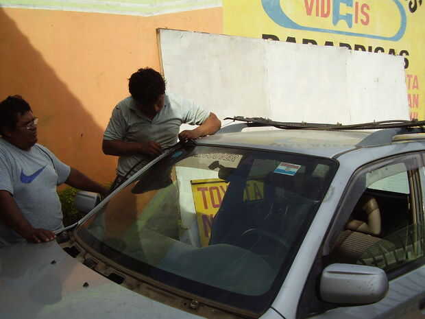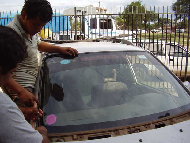 1.-quitar los limpiaparabrisas y la parrilla que cubre la parte inferior del parabrisas, usted verá las 2 bases de plástico donde se encuentra el parabrisas.