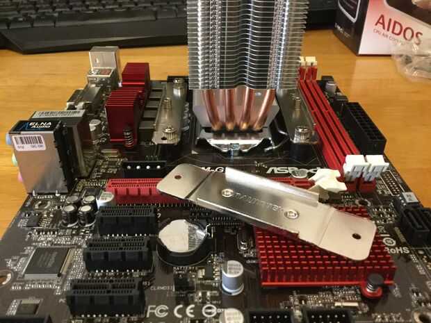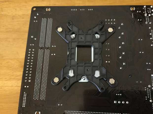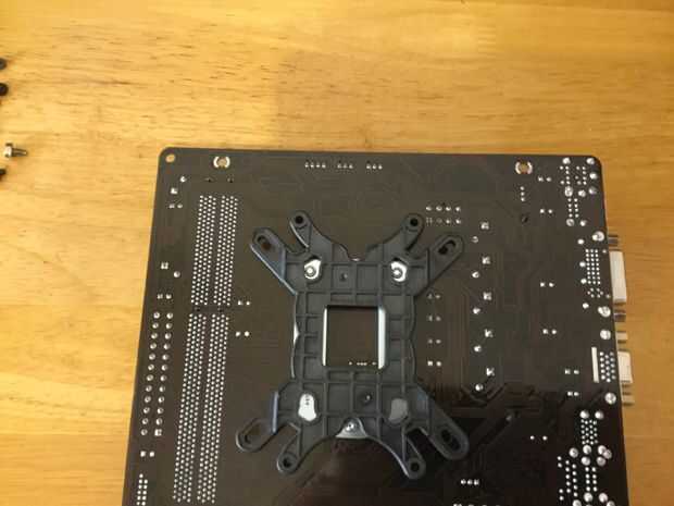 En el otro lado utilizar sus cuatro separadores negro y por encima de ellos colocar sus soportes de montaje 2 de Intel (refrigerador también tiene soportes de AMD pero cubrimos el Intel en este instructable).