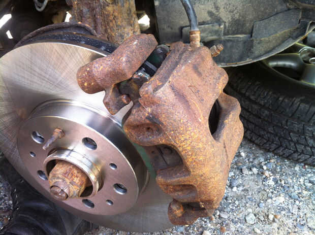 Los pasadores de guía en mis pinzas eran bastante grasos, así que no añado más. Si el tuyo es seco, añadir sólo una capa fina de grasa de eje para el perno sí mismo como usted lo empuje hacia dentro la goma guardapolvo. Añada una gota de loctite azul a las roscas del perno guía y apriételos hasta el recomendada 22 pies libras.