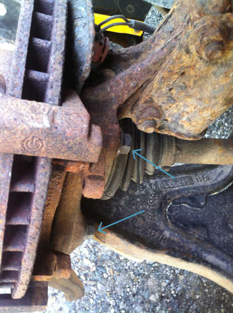 Para ayudar, gire el volante a la derecha, esto le da más espacio a una llave en los tornillos. Son apretados, como usted puede imaginar, pero necesitan salir. Una vez que liberarse, estás en buena forma.