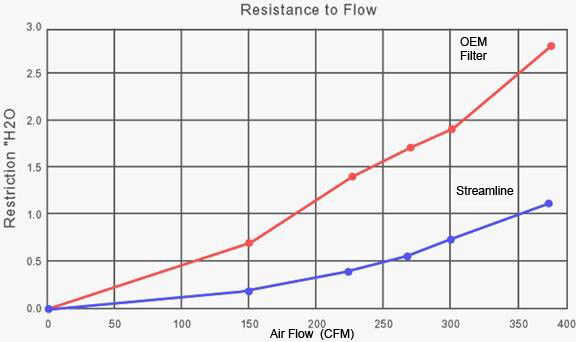 Aquí es un gráfico de la disminución de la resistencia al flujo visto en un filtro similar a un BMW Z4.