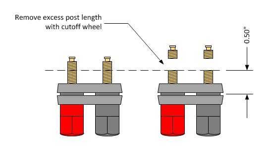 Postes de Vktech se construyen rugoso e incluyen un montón de montaje que hace un buen valor para el dinero. Sin embargo los directores de centro son aproximadamente 1/2" de más de lo necesario que puede desperdiciar mucho espacio en el gabinete. Para mantener el suministro compacto, deben modificarse los bornes como se indica en el diagrama anterior y los siguientes pasos:
