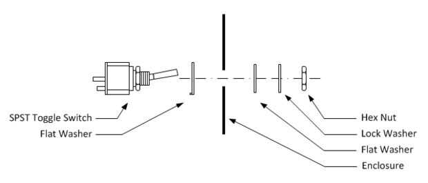 1. Retire la tuerca hexagonal exterior, arandela de fijación y arandelas planas el interruptor SPST.