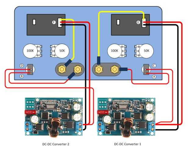 9. soldar un extremo del Cable C al perno superior del interruptor de potencia de la fuente 1 SPST. Pase el otro extremo del Cable C Conector de salida de DC-DC convertidor 1 pero no conecte aún.