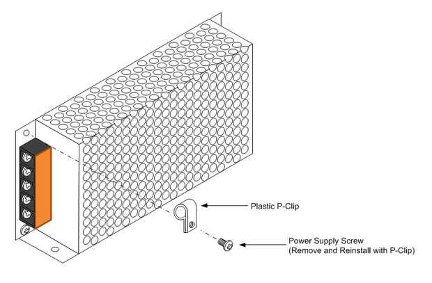 2. Instale un P-Clip de plástico con el tornillo que retiró orientado como se indica en el diagrama de arriba.