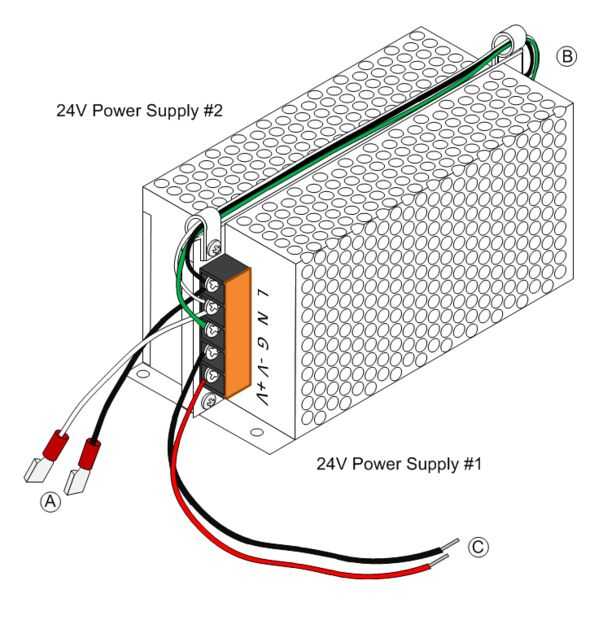 6. Coloque 24V alimentación de la fuente 1 y 2 espalda con espalda como se ilustra en el diagrama anterior.