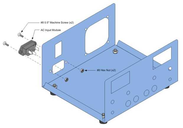 2. Fije el módulo de entrada de CA para el caso de dos #8 tornillos y tuercas hexagonales.