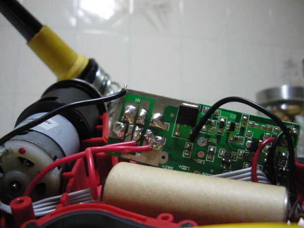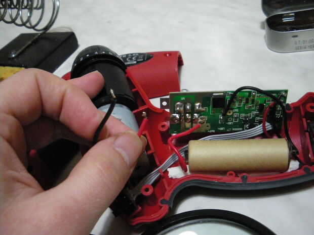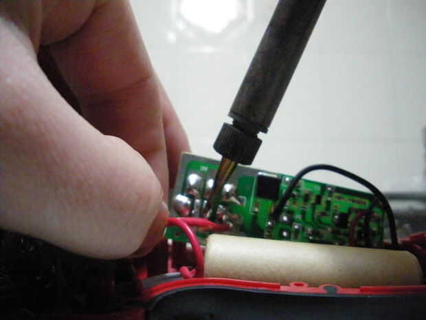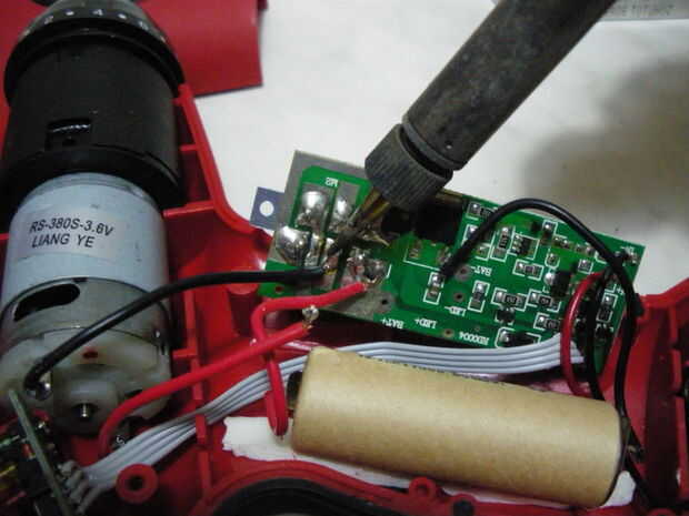 Destornillador original funciona con pilas no recargables 4 * 1.5v. He modificado el sistema de batería con 5 pilas recargables, por lo que podemos conseguir 6v para ejecutar perfectamente el destornillador. También he encontrado dificultad en el man